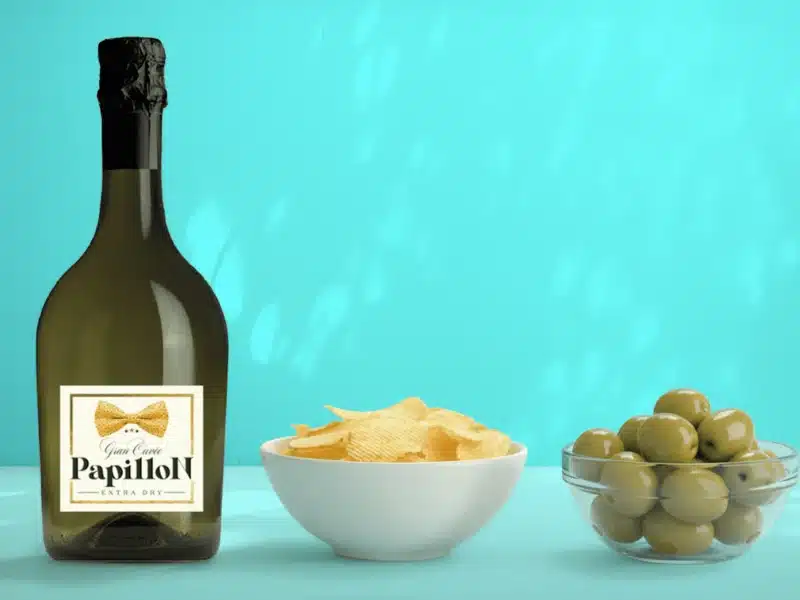 A ready-to-drink aperitif in the name of simplicity and elegance. Papillon Gran Cuvée Extra Dry delivers freshness and smoothness with its fine perlage, accompanied by potato chip rustic chips and full-flavored Nocellara olives. A small kit for toasting in style on any occasion.